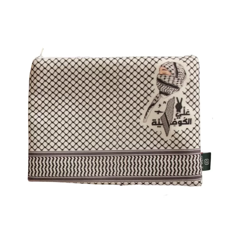 کیفچه «علی الکوفیه» از جنس مخمل چاپ شده لمینت‌دار، با ابعاد 18٫5×12٫5 سانتی‌متر، محصولی چندکاره برای استفاده به عنوان کیف لوازم بهداشتی، ارگانایزر چمدان، جامدادی و غیره است. این کیف با طراحی کاربردی، برای سفر و استفاده روزمره مناسب است.