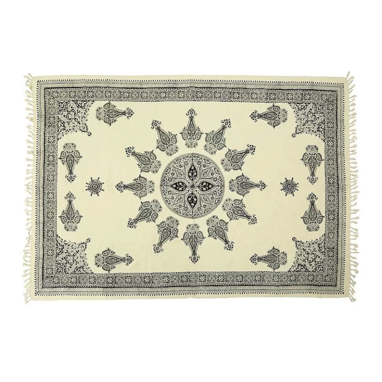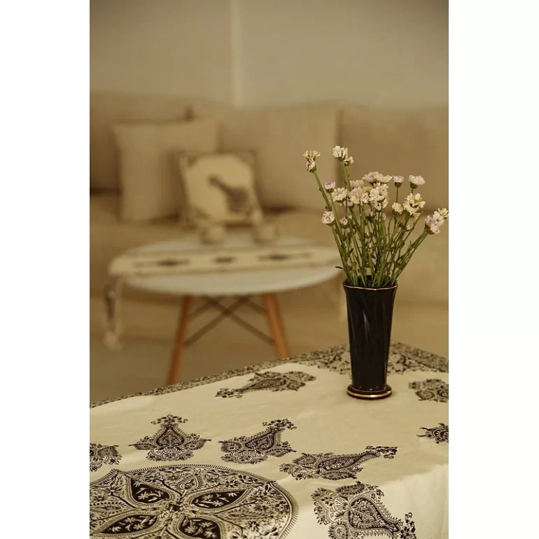 رومیزی افسون با ابعاد 100×150 سانتیمتر از جنس پارچه متقال تولید شده و با روش سنتی مهرکوبی دستی توسط هنرمندان اصفهانی ساخته شده است. طرح آن الهامگرفته از نقوش اصیل ایرانی و گلهای سنتی بوده و جلوهای هنری به میز پذیرایی و دکوراسیون میبخشد. هر قطعه به دلیل دستساز بودن، اثری منحصربهفرد است و همراه با بستهبندی پارچهای هماهنگ ارائه میشود. این محصول برای استفاده روزمره یا هدیه صنایع دستی انتخابی کاربردی و ماندگار است.