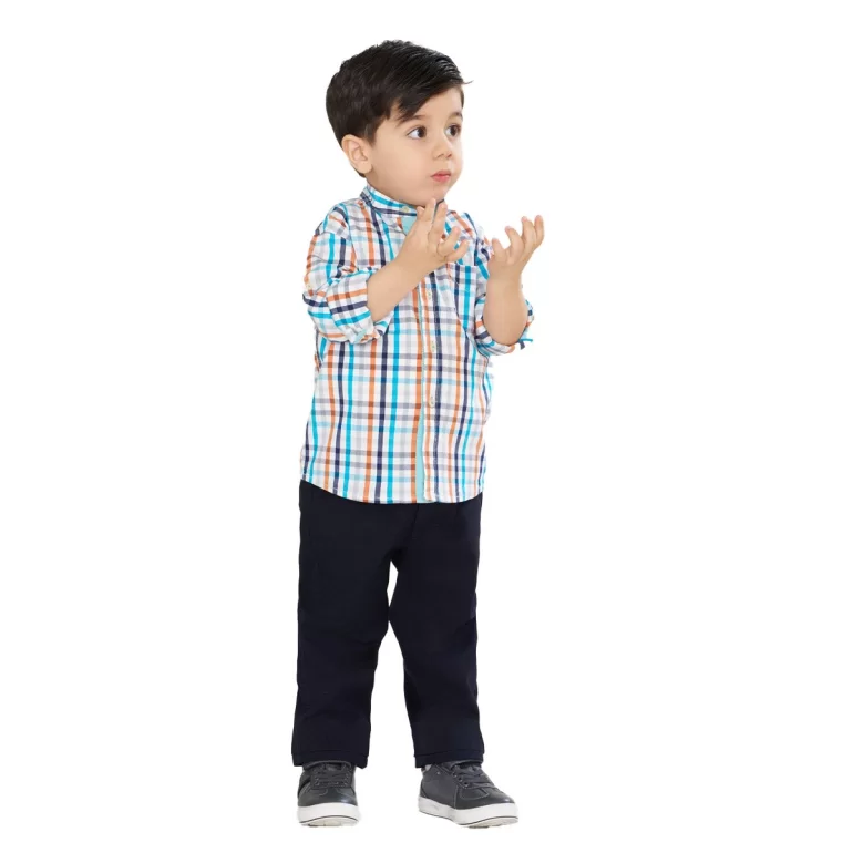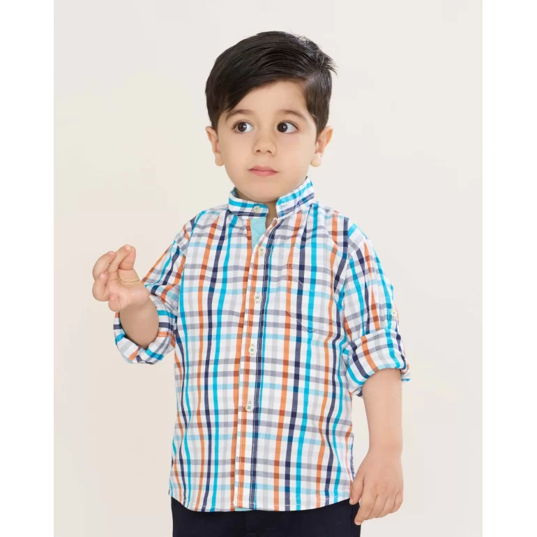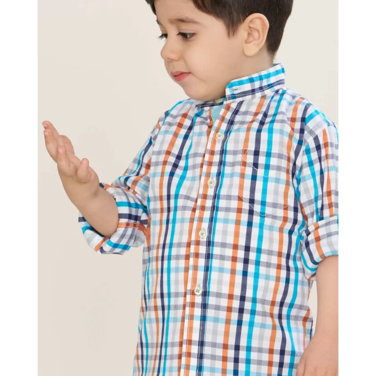 پیراهن بچه گانه یقه دیپلمات آستین بلند چهار خانه کد PB12090