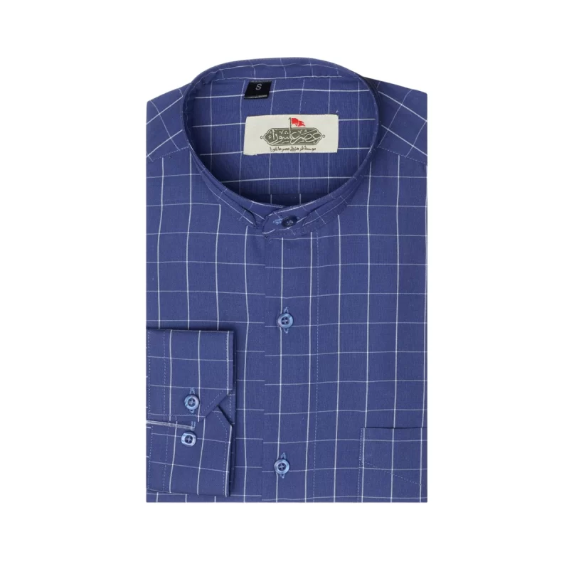 پیراهن تترون یقه دیپلمات کلاسیک چهارخانه زمینه سرمه ای کد PC12154