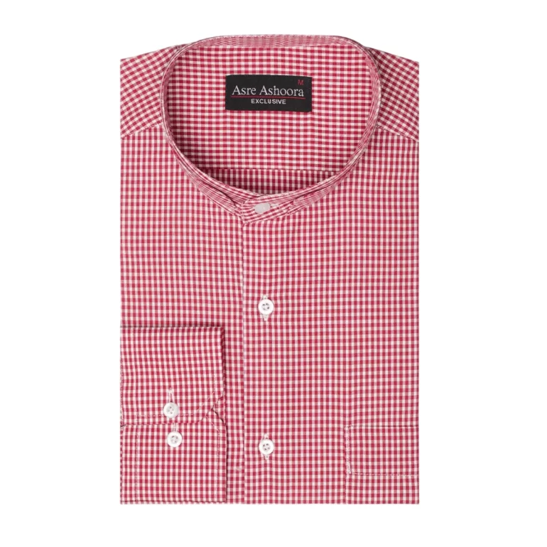 پیراهن تترون یقه دیپلمات کلاسیک چهارخانه ریز زمینه قرمز کد PC12071