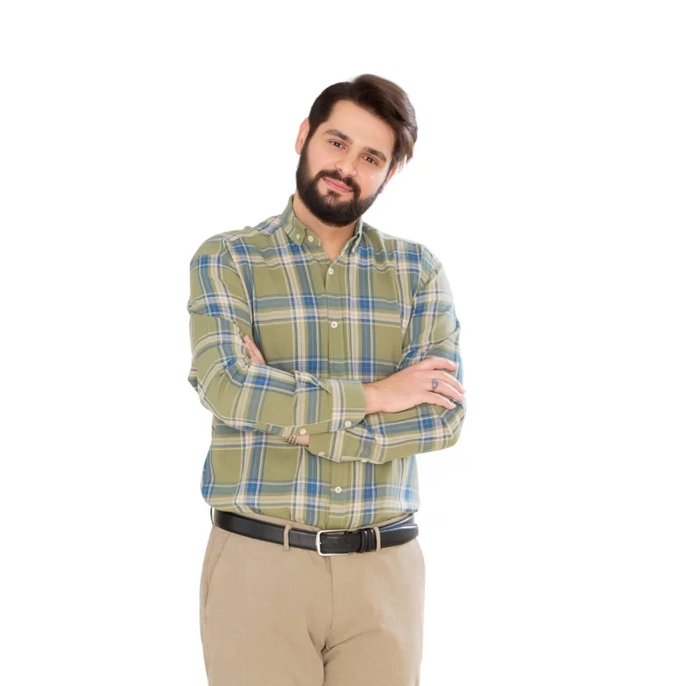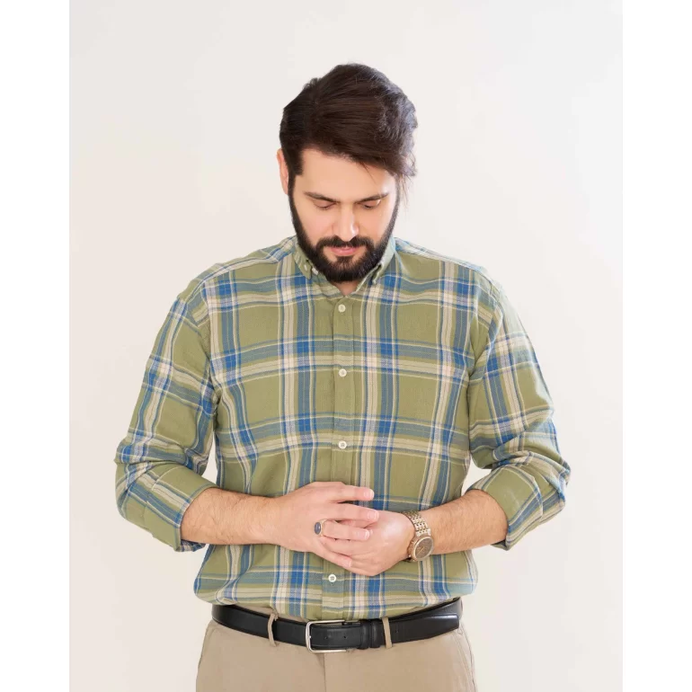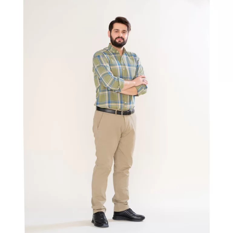 پیراهن مردانه رنگی اسپرت یقه انگلیسی چهارخانه زمینه سبز کد PS21164