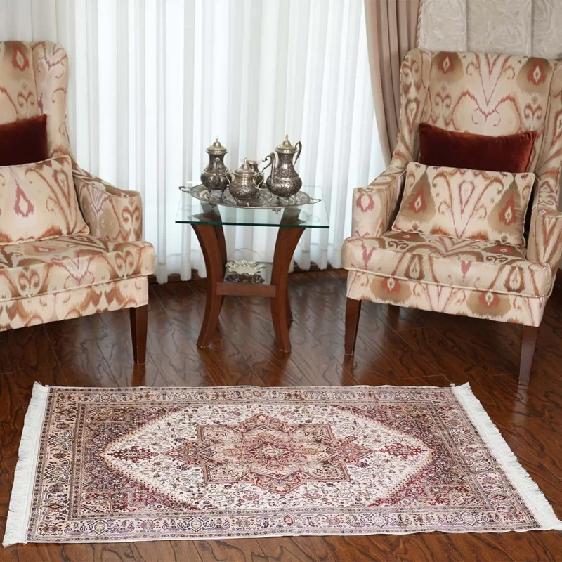 روفرشی شانل سنگین با وزن 1800 گرم از پارچه مرغوب تولید شده و دارای کیفیت بالای رنگ، بافت و چاپ با مواد اولیه اروپایی است. این محصول قابلیت شست‌وشو با سفیدکننده و لکه‌بر را دارد و بر اساس ابعاد استاندارد فرش طراحی شده است. همچنین امکان تولید در اندازه‌های سفارشی فراهم می‌باشد.