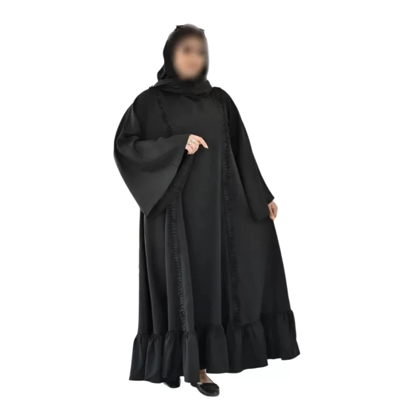 مانتو عبایی مشکی به صورت فری‌سایز و با دوخت مزونی عرضه می‌شود و بند تنظیم ندارد. این مانتو از سه نوع پارچه شامل ابروبادی خنک و سبک مناسب استفاده روزمره، الیزه مجلسی با ریزش نرم مناسب فصل و شانتون با بافت برجسته و درشت دوخته شده است. محصول شخصی‌دوزی بوده، امکان مرجوعی سلیقه‌ای ندارد و انتخاب سایز باید بر اساس جدول انجام شود.