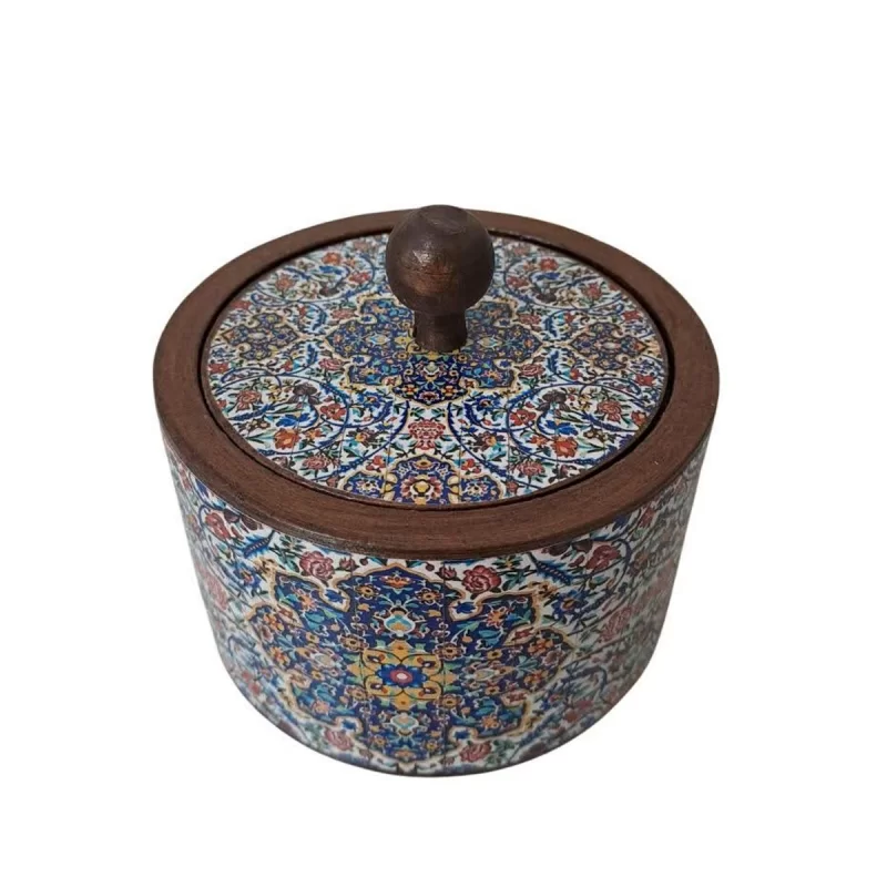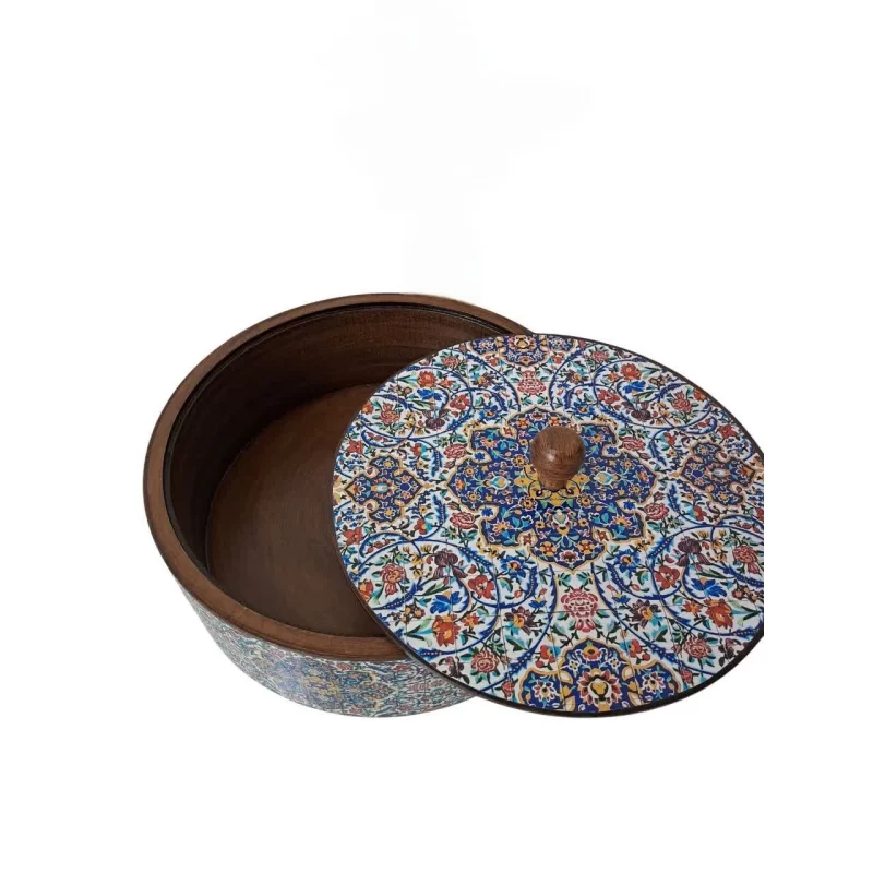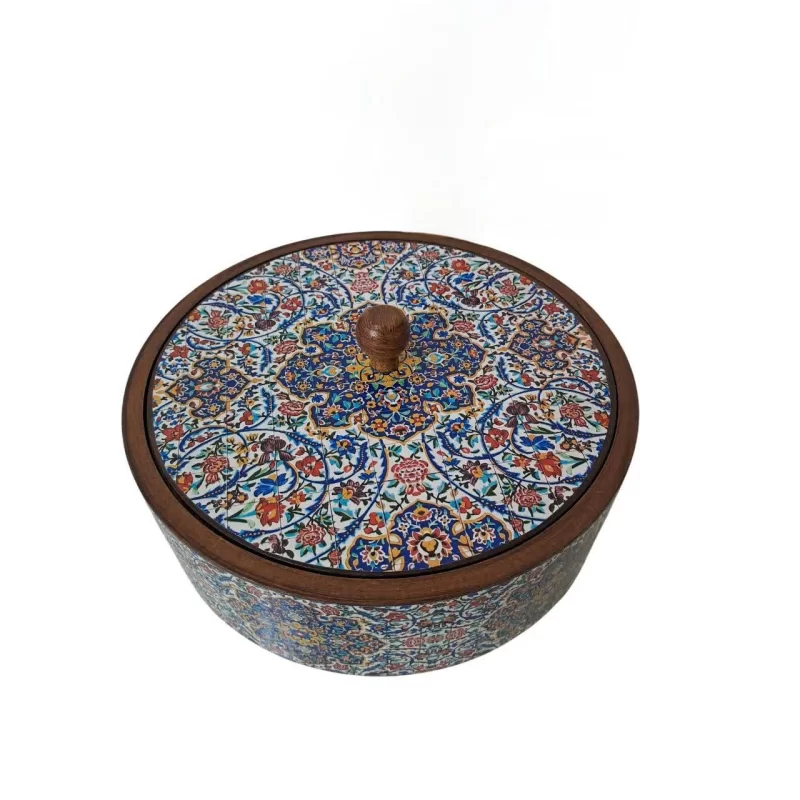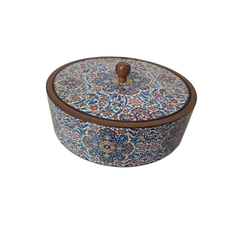 شکلاتخوری یا آجیلخوری چوبی گرد طرح 110 از جنس MDF ساخته شده و با تکنیک دکوپاژ تزئین شده است. این محصول برای پذیرایی از مهمان بهعنوان ظرف شکلات یا آجیل کاربرد دارد و بهسادگی با دستمال نمدار قابل تمیز کردن است.