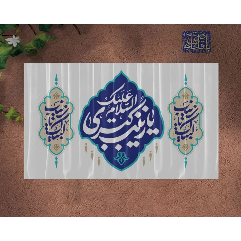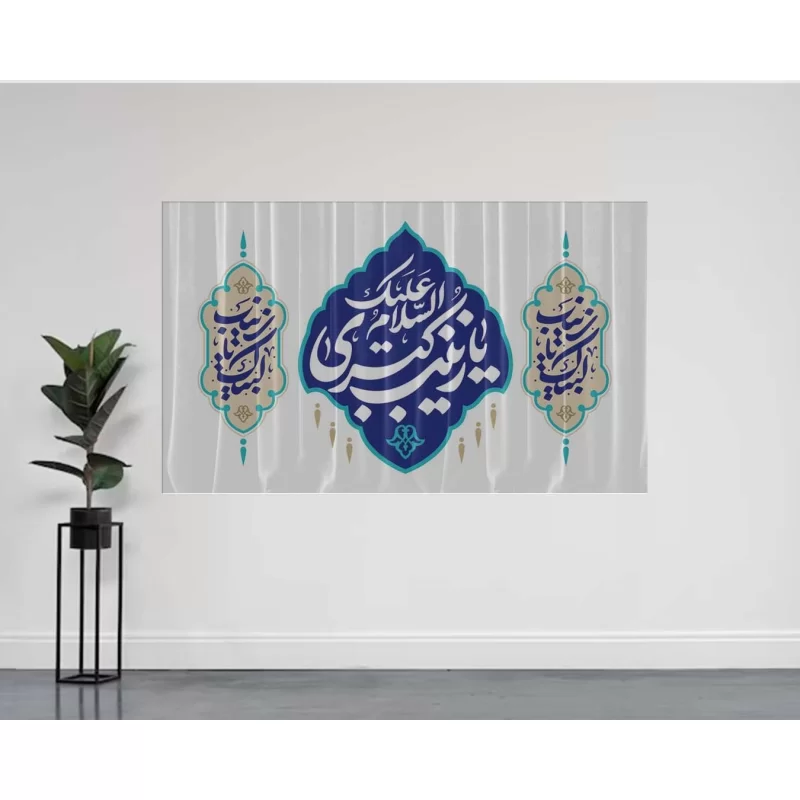 کتیبه مخمل افقی طرح ولادت حضرت زینب (س) از مخمل درجهیک با قابلیت شستوشو تهیه شده است. طرح این کتیبه با روش چاپ سابلیمیشن اجرا شده و ماندگاری و وضوح بالایی دارد. محصولی مناسب برای تزئین منزل، محل کار و هیئتهای مذهبی است.