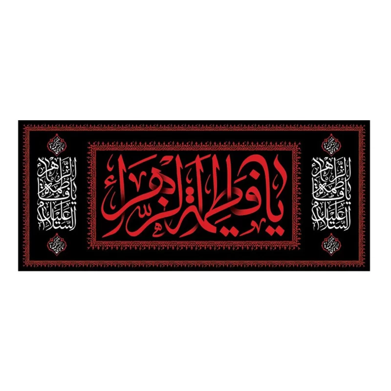 کتیبه مخمل افقی طرح دهه فاطمیه و شهادت حضرت فاطمه زهرا (س) از مخمل درجهیک با قابلیت شستوشو تولید شده است. طرح آن با روش چاپ سابلیمیشن اجرا شده و وضوح و ماندگاری بالایی دارد. این کتیبه گزینهای مناسب برای استفاده در منزل، محل کار و هیئتهای مذهبی است.