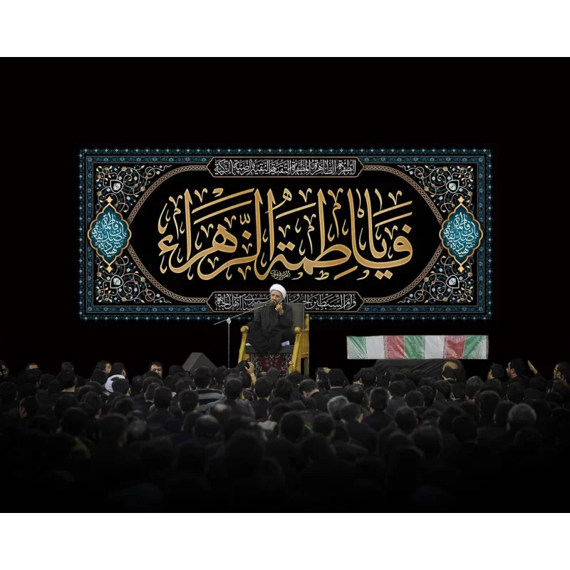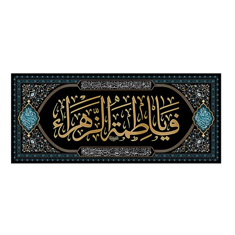 کتیبه مخمل افقی طرح دهه فاطمیه و شهادت حضرت فاطمه زهرا (س) از مخمل درجهیک با قابلیت شستوشو تولید شده است. طرح آن با روش چاپ سابلیمیشن اجرا شده و وضوح و ماندگاری بالایی دارد. این کتیبه گزینهای مناسب برای استفاده در منزل، محل کار و هیئتهای مذهبی است.