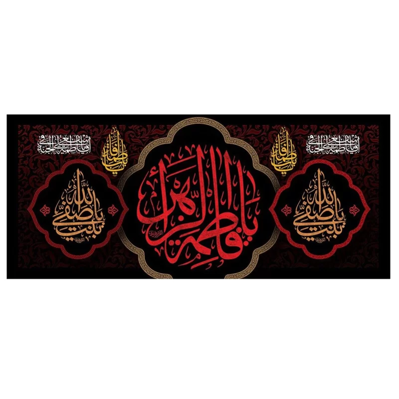 کتیبه مخمل افقی طرح دهه فاطمیه و شهادت حضرت فاطمه زهرا (س) از مخمل درجهیک با قابلیت شستوشو تولید شده است. طرح آن با روش چاپ سابلیمیشن اجرا شده و وضوح و ماندگاری بالایی دارد. این کتیبه گزینهای مناسب برای استفاده در منزل، محل کار و هیئتهای مذهبی است.
