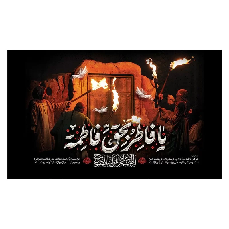 کتیبه مخمل افقی طرح دهه فاطمیه و شهادت حضرت فاطمه زهرا (س) از مخمل درجهیک با قابلیت شستوشو تولید شده است. طرح آن با روش چاپ سابلیمیشن اجرا شده و وضوح و ماندگاری بالایی دارد. این کتیبه گزینهای مناسب برای استفاده در منزل، محل کار و هیئتهای مذهبی است.