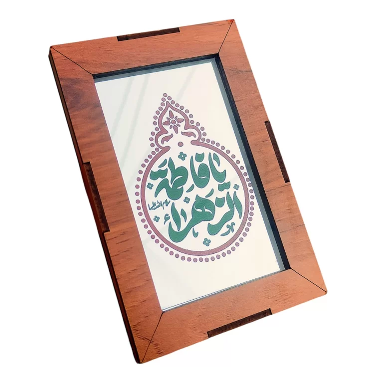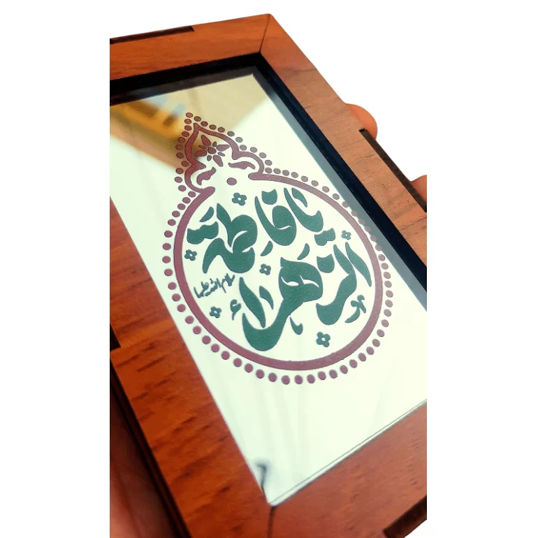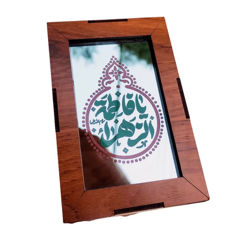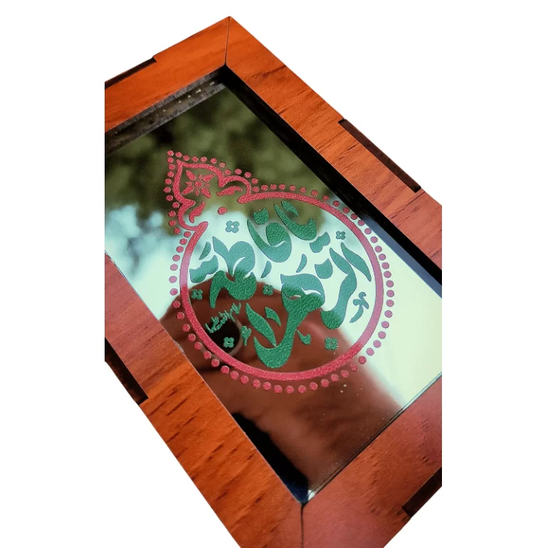 تابلو آینهای حکاکیشده طرح «یا فاطمه الزهرا (س)» اثری نفیس و ماندگار با ابعاد 13×8.5×1 سانتیمتر است. نقوش این تابلو با لیزر دقیق حکاکی شده و مراحل رنگآمیزی و مونتاژ بهصورت دستی انجام میشود. حکاکی از پشت آینه صورت گرفته تا از تماس مستقیم با نقش جلوگیری شود. این تابلو قابل استفاده بهصورت رومیزی یا دیواری است و امکان سفارش طرح دلخواه مانند دلنوشته، عکس یا لوگو در تیراژ وجود دارد.