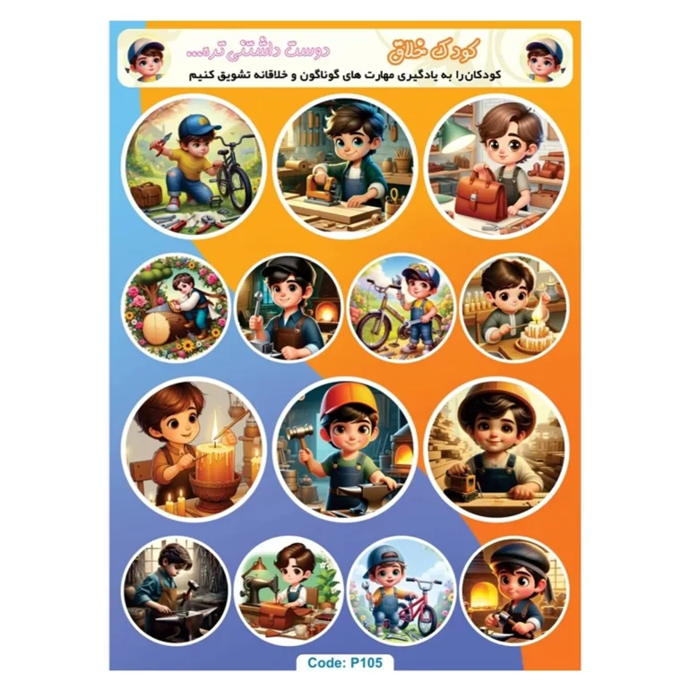 برچسب کارتونی پسرانه طرح کودک خلاق کد P105