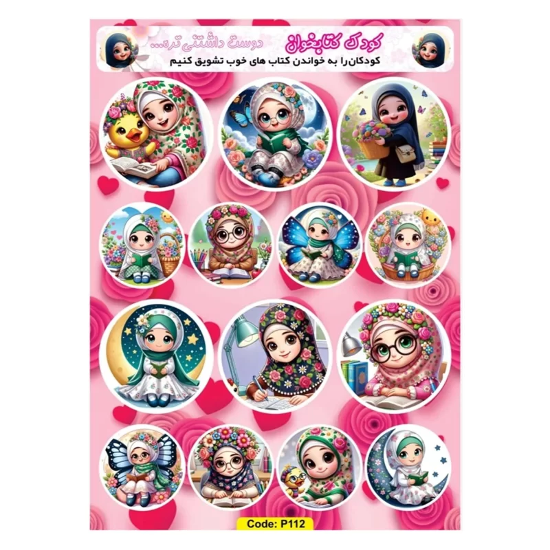 برچسب کارتونی دخترانه طرح کودک کتابخوان کد P112