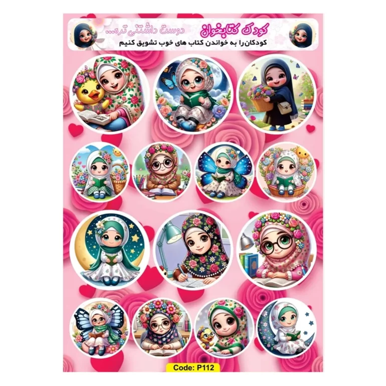 برچسب کارتونی دخترانه طرح کودک کتابخوان کد P112 با طرح کودک کتابخوان، دارای طراحی جذاب به سبک ایرانی اسلامی است. این استیکر از جنس PVC براق و باکیفیت ساخته شده و بهصورت نیمتیغ دوربری شده است. ابعاد آن حدود 20×14/5 سانتیمتر بوده و بهصورت تک عددی عرضه میشود. این برچسب گزینهای مناسب برای تزئین دفتر، کیف، لوازم شخصی و وسایل اتاق کودک است.