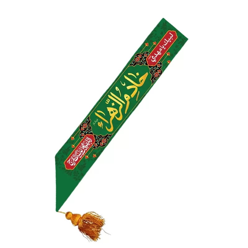 حمایل مخمل سبز بزرگسال طرح خادم الزهرا کد 3002