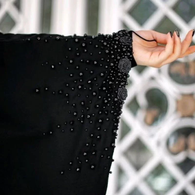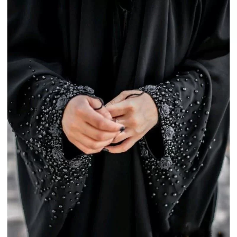 چادر مشکی عربی جواهر دوزی طرح بابونه