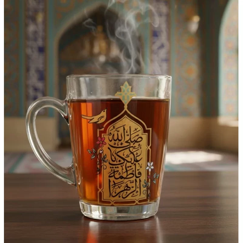 نیم لیوان دسته دار طرح یا فاطمه الزهرا بسته 6 عددی