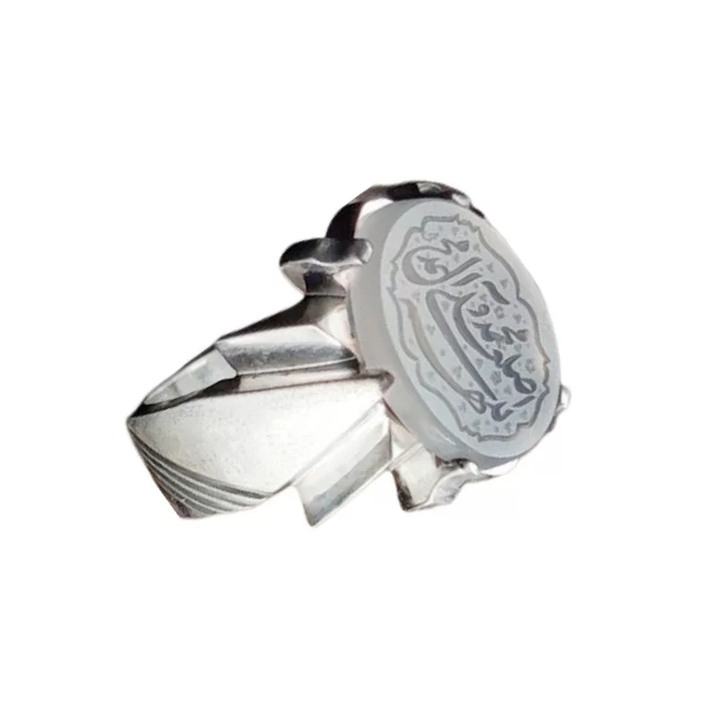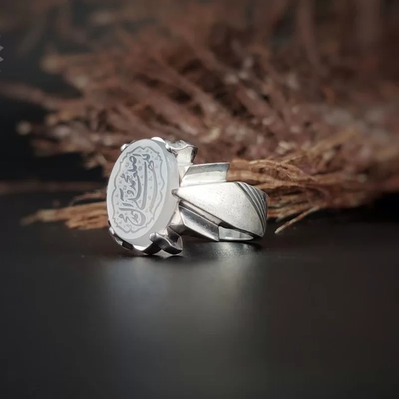 انگشتر نقره مردانه مدل عقیق کبود یمن حکاکی صلوات