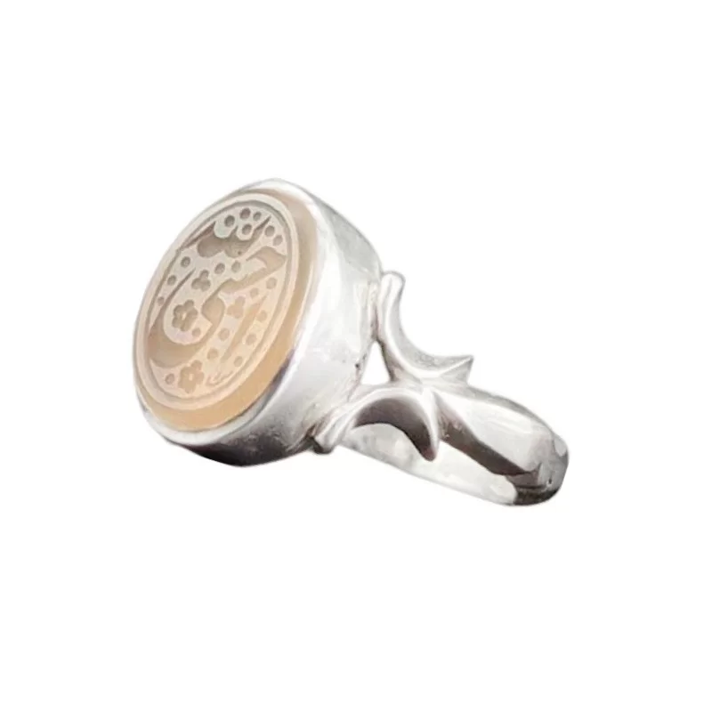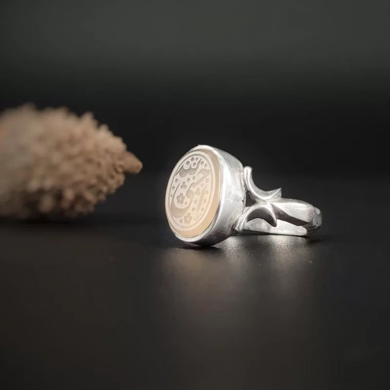 انگشتر نقره مردانه مدل عقیق یمن نباتی به همراه تربت و حرز چاپی امام جواد حکاکی حسبی الله