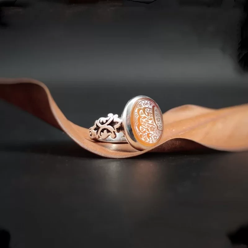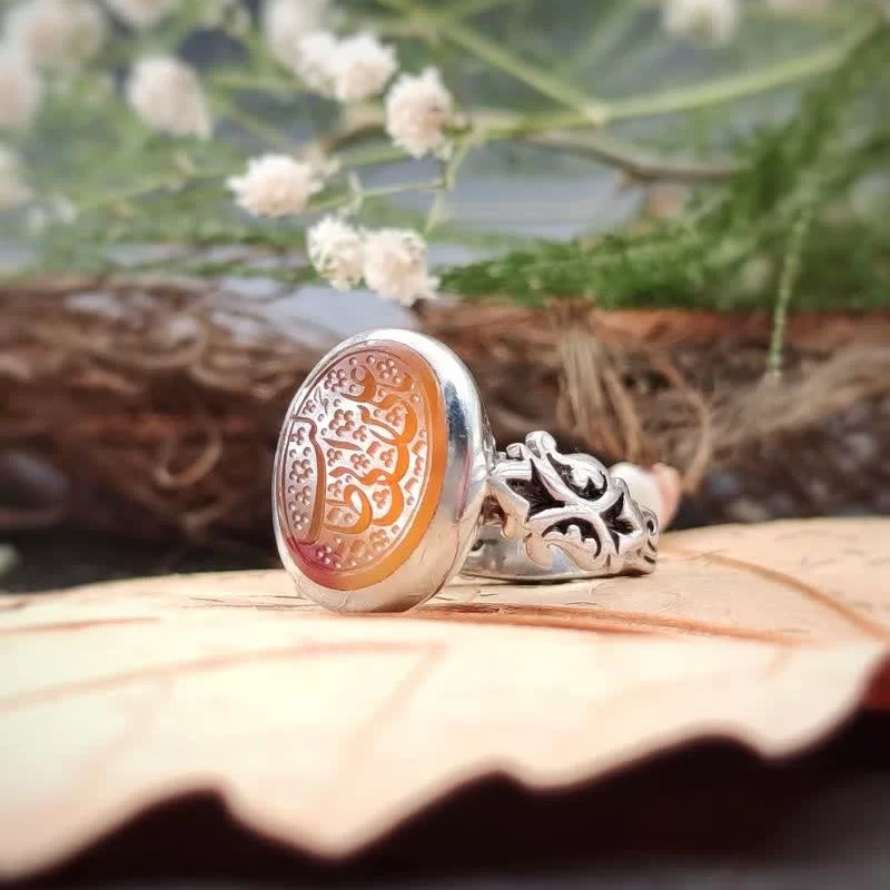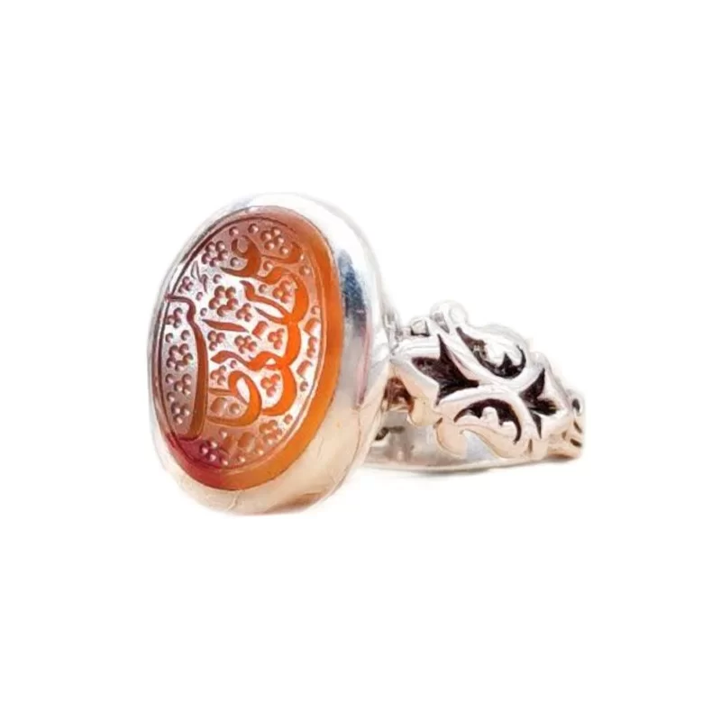 انگشتر نقره مردانه مدل عقیق یمانی دو رنگ حکاکی یاعلی بن ابیطالب