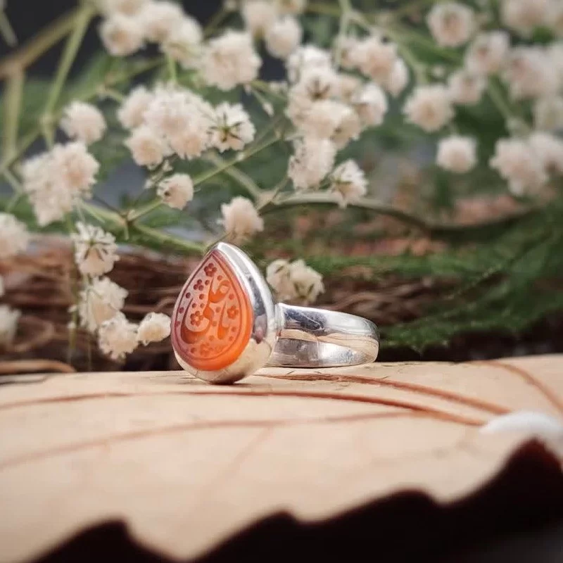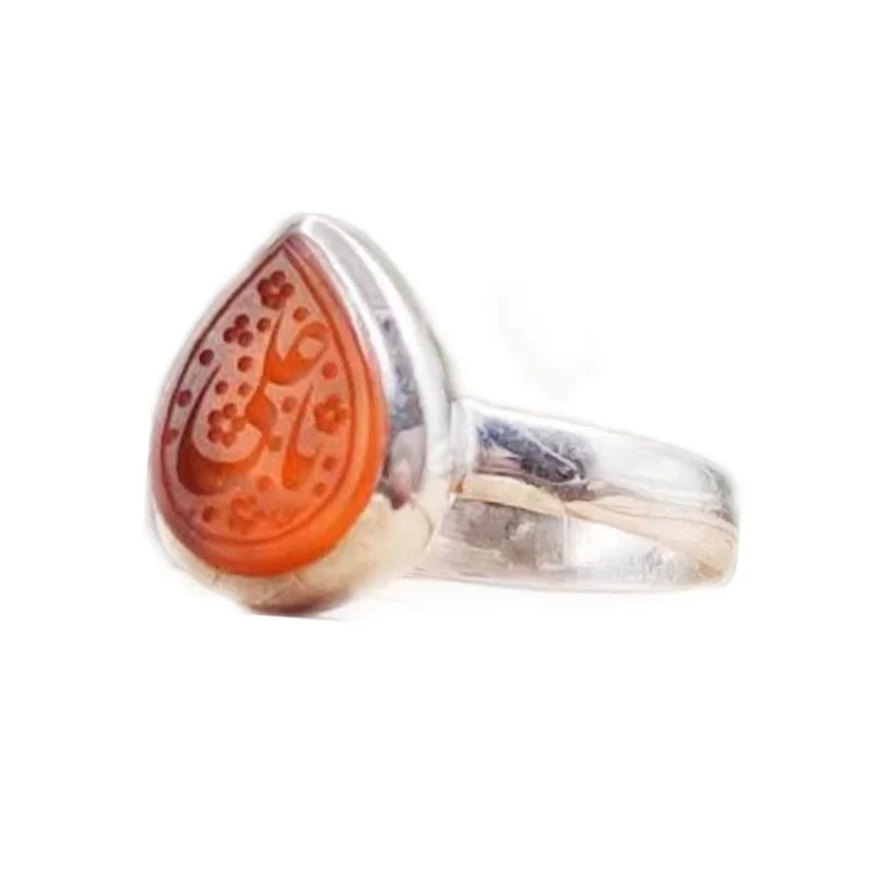انگشتر نقره مردانه مدل عقیق یمن پرتقالی حکاکی یاعلی