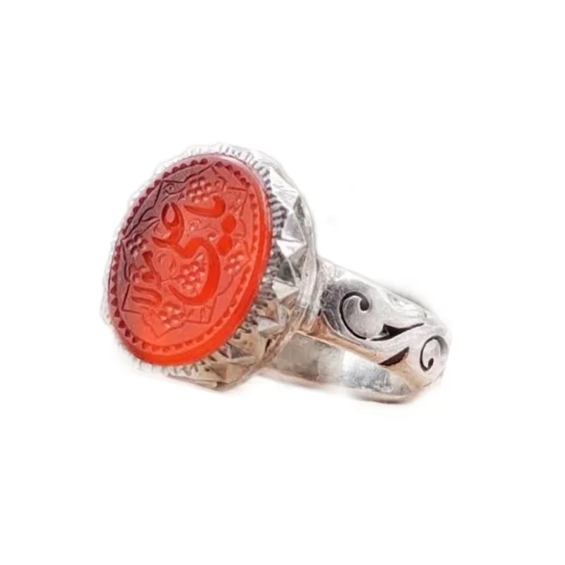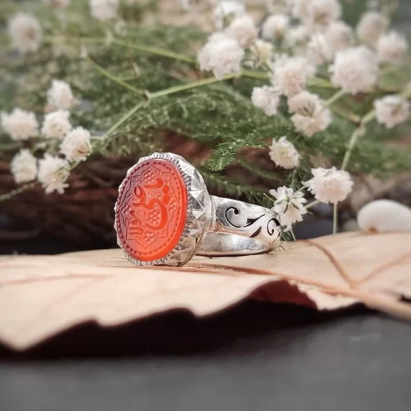 انگشتر نقره مردانه مدل عقیق نارنجی خراسان حکاکی یاعلی مولا