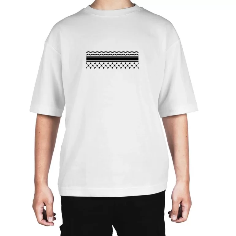 طرح چفیه روی تیشرت نمادی از هویت فرهنگی و مقاومت فلسطین است که ظاهری منحصر به فرد به شما میبخشد.