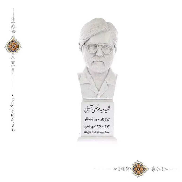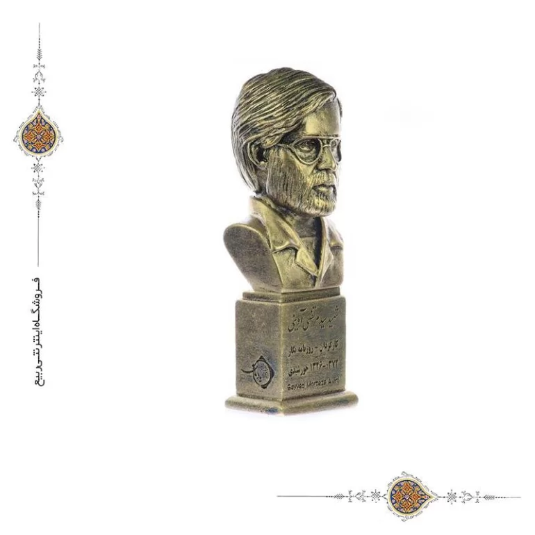 سردیس شهید سید مرتضی آوینی از جنس پتینه مصنوعی و در ابعاد تقریبی 17×6×6 سانتی متر تولید شده است. این محصول قابل شستشو هنر دست هنرمندان ایرانی بوده و در ساخت آن از دستگاه های پیشرفته بهره گرفته شده است.