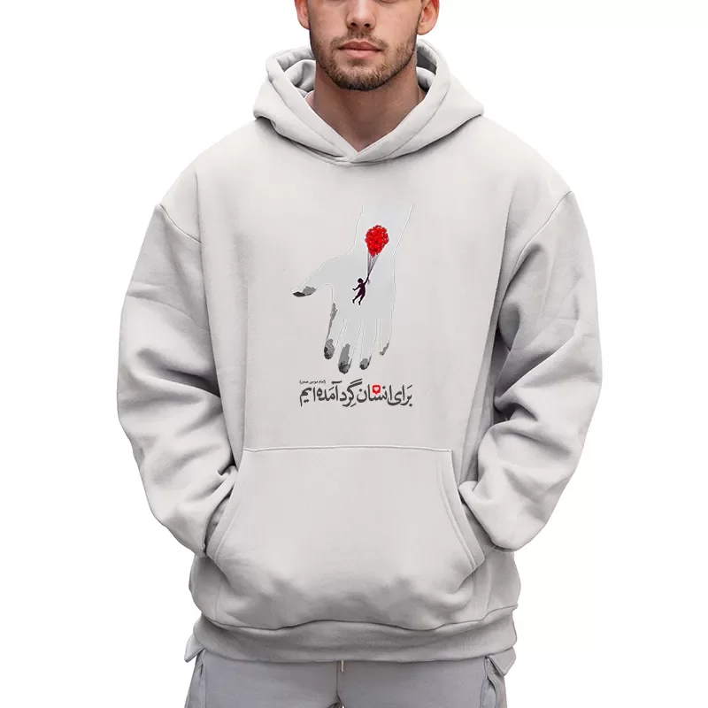 طرح دست همراه با نوشتهی «برای انسان گرد آمدهایم» روی سینهی تیشرت، پیامی از همبستگی، نوعدوستی و ارزشهای انسانی را منتقل میکند و جلوهای خاص و متفاوت به ظاهر تیشرت میدهد.
