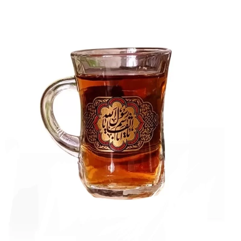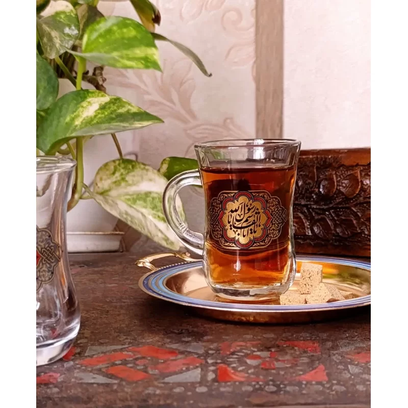 استکان کمرباریک دسته دار طرح یا ابالقاسم یا رسول الله بسته 6 عددی
