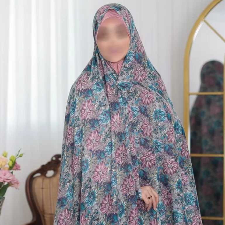 چادر مجلسی وال هندی طرح گل رنگ فیروزه ای کد 5606