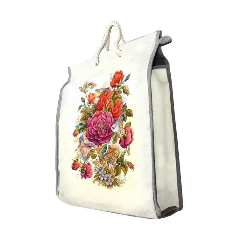 کیسه خرید طرح سه بعدی گل زمینه سفید