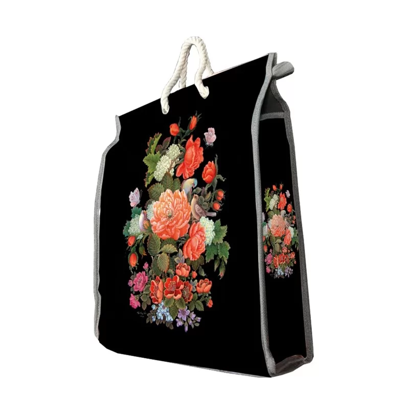 کیسه خرید طرح سه بعدی گل زمینه مشکی