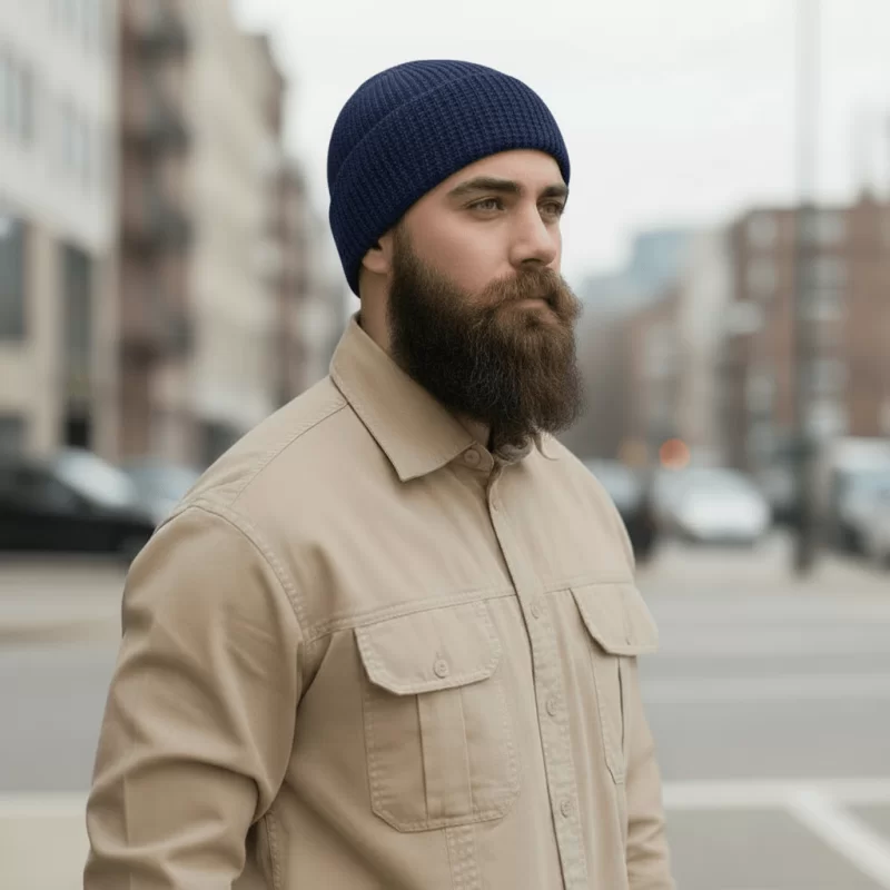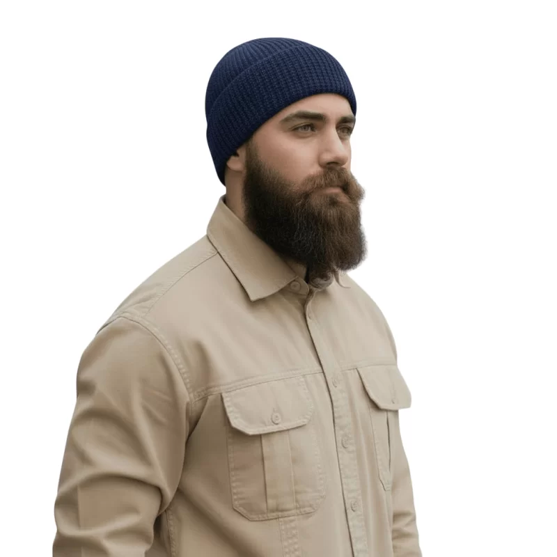 کلاه بافتنی مدل شهدایی کشی کاموایی رنگ سورمه ای