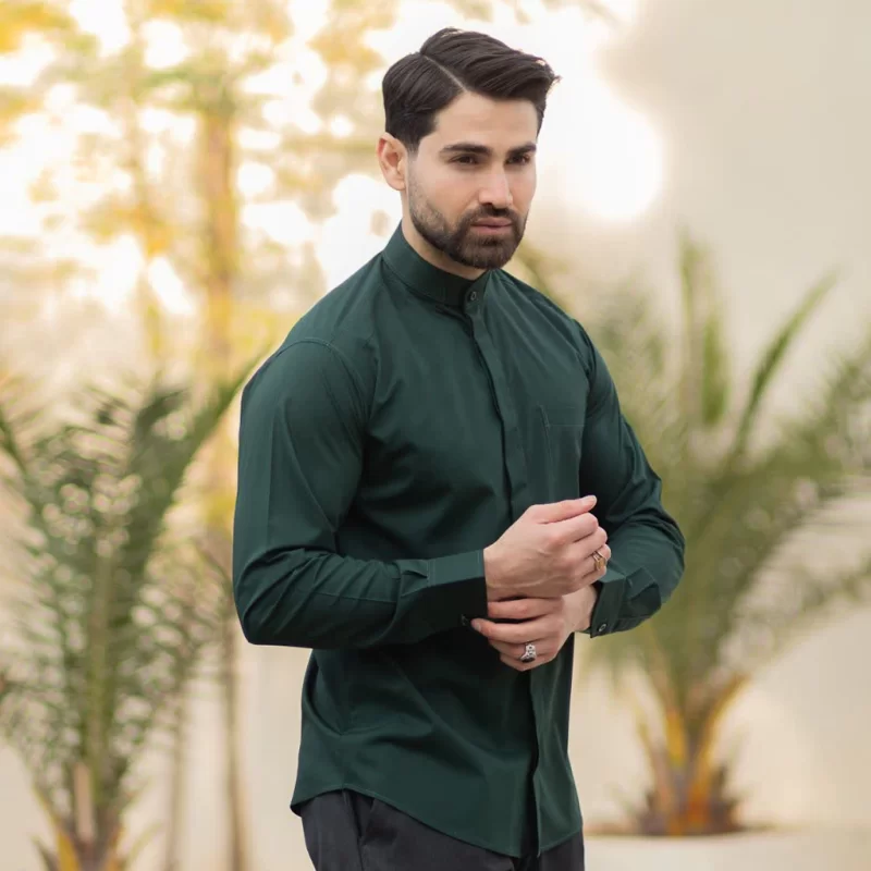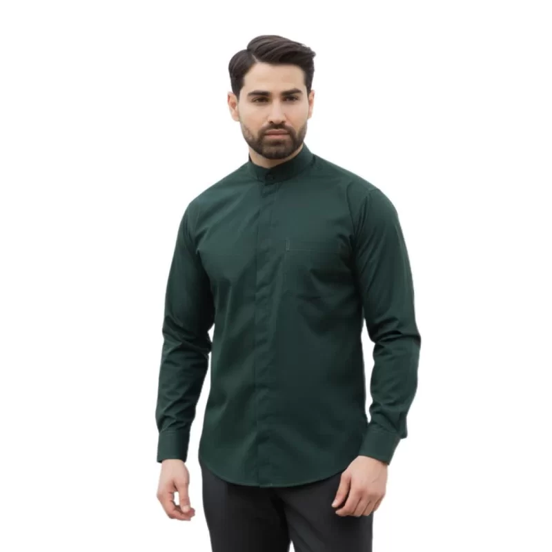 پیراهن طرح دویقه دکمه مخفی رنگ سبز یشمی