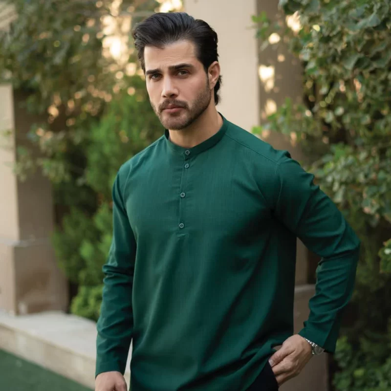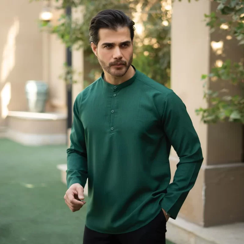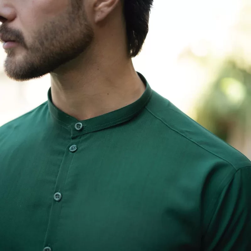 پیراهن یقه یک سانت نصف دکمه سبز چمنی کد 701
