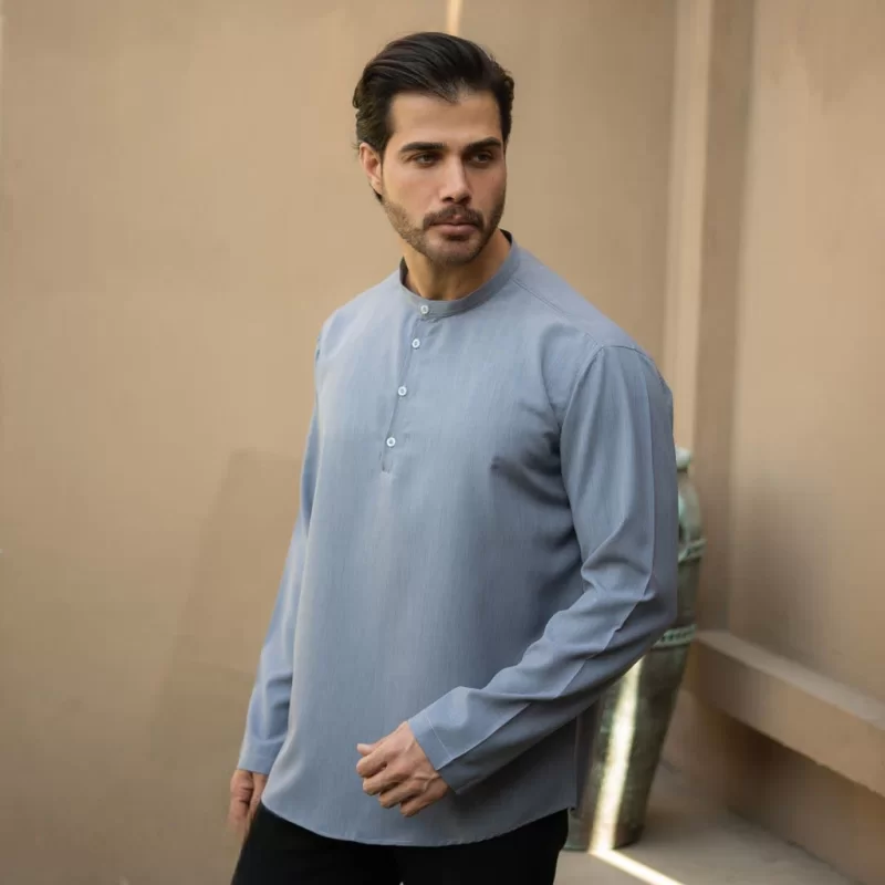 پیراهن یقه یک سانت نصف دکمه طوسی روشن کد 705