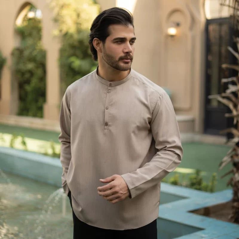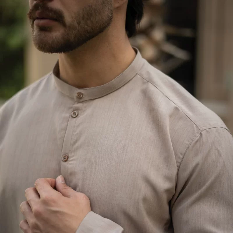 پیراهن یقه یک سانت نصف دکمه کرمی کد 708