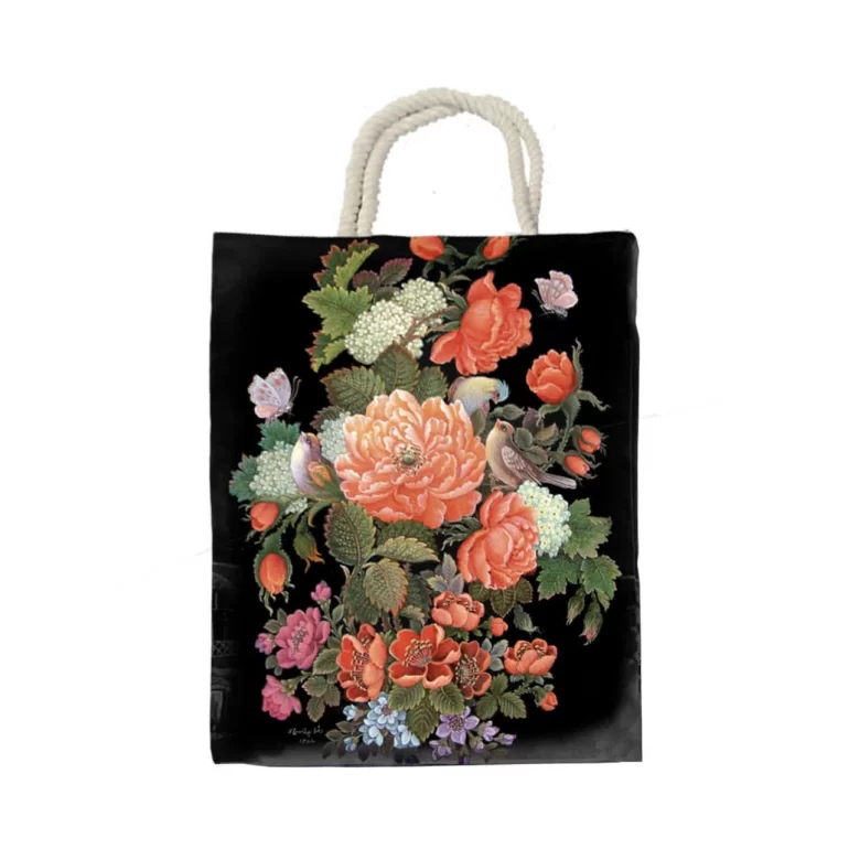 کیسه خرید طرح دو بعدی گل زمینه مشکی