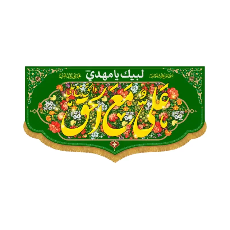کتیبه پیش رو از مخمل درجه‌یک قابل شست‌وشو تهیه شده است. چاپ طرح به روش سابلیمیشن انجام شده و ماندگاری و وضوح رنگ بالایی دارد. این محصول در سه سایز 45×90، 70×140 و 140×280 سانتی‌متر عرضه می‌شود و برای استفاده در منزل، هیئت یا محل کار مناسب است.
