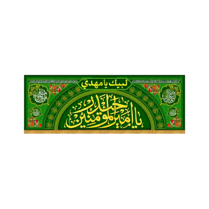 کتیبه مخمل افقی از مخمل درجهیک قابل شستوشو تهیه شده است. چاپ طرح به روش سابلیمیشن انجام شده و ماندگاری و وضوح رنگ بالایی دارد. این محصول در سایز 140*400 سانتیمتر عرضه میشود و برای استفاده در منزل، هیئت یا محل کار مناسب است.