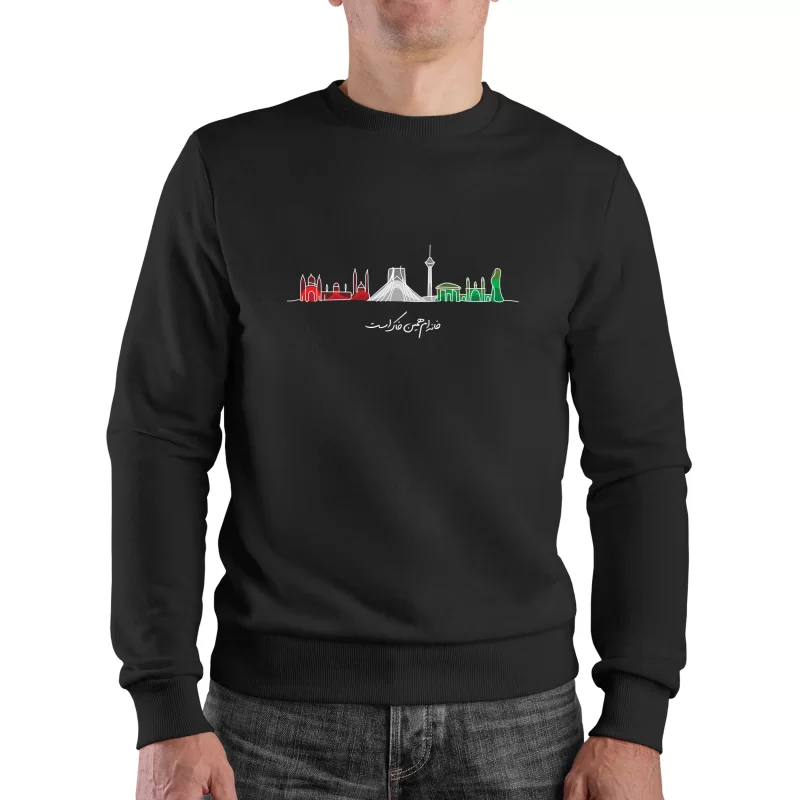 نوشته «خانه‌ام همین خاک است» که بر سینه تیشرت نقش بسته، پیامی عمیق از دلبستگی به خاک ایران، ریشه‌ها و هویت ملی را منتقل می‌کند. این عبارت نمادی از تعلق، وفاداری و عشق به سرزمینی است که هویت انسان را شکل می‌دهد.