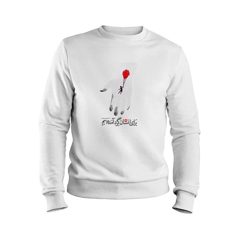 طرح دست بههمراه نوشته «برای انسان گرد آمدهایم» که روی سینه تیشرت قرار گرفته، پیامی روشن و الهامبخش از همبستگی، نوعدوستی و پایبندی به ارزشهای انسانی را منتقل میکند. این ترکیب نمادی از اتحاد و مسئولیتپذیری اجتماعی است که مخاطب را به همدلی و همراهی دعوت میکند.
