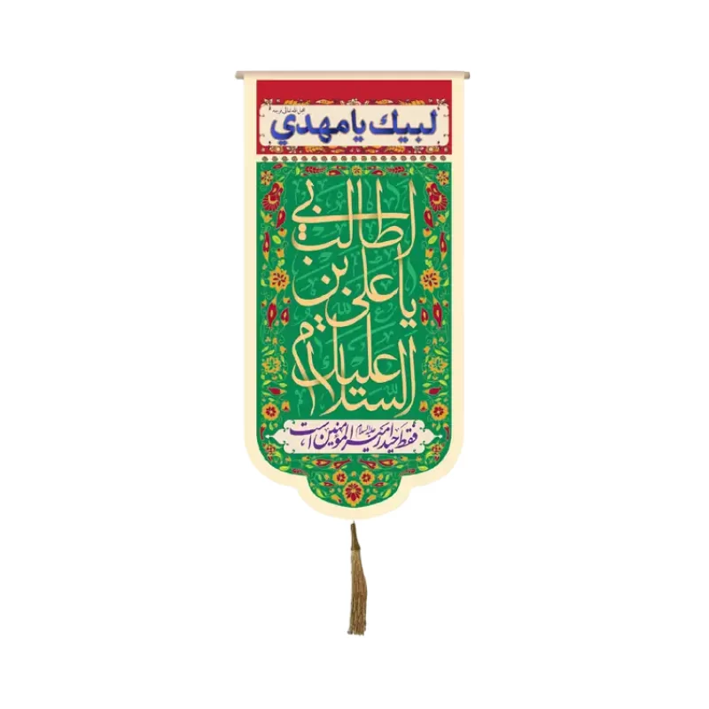کتیبه آیفونی از جنس مخمل درجهیک قابل شستوشو تهیه شده است. چاپ طرح به روش سابلیمیشن انجام شده و ماندگاری و وضوح رنگ بالایی دارد. این محصول در دو سایز 50*21 و 70*35 سانتیمتر عرضه میشود و برای استفاده در منزل، هیئت یا محل کار مناسب است.
