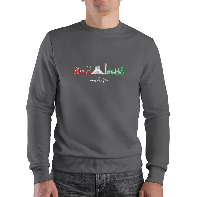 نوشته «خانه‌ام همین خاک است» که روی سینه تیشرت قرار گرفته، مفهومی عمیق از عشق به میهن و دلبستگی به خاک ایران را به تصویر می‌کشد. این عبارت نمادی از هویت ملی، ریشه‌ها و تعلق خاطر به سرزمینی است که خانه‌ی حقیقی انسان محسوب می‌شود و در کنار سادگی، جلوه‌ای پرمعنا و اثرگذار به استایل تیشرت می‌بخشد.