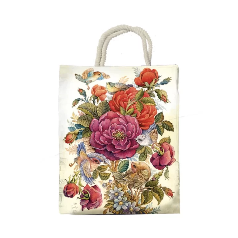 کیسه خرید دو بعدی کوچک طرح گل زمینه سفید