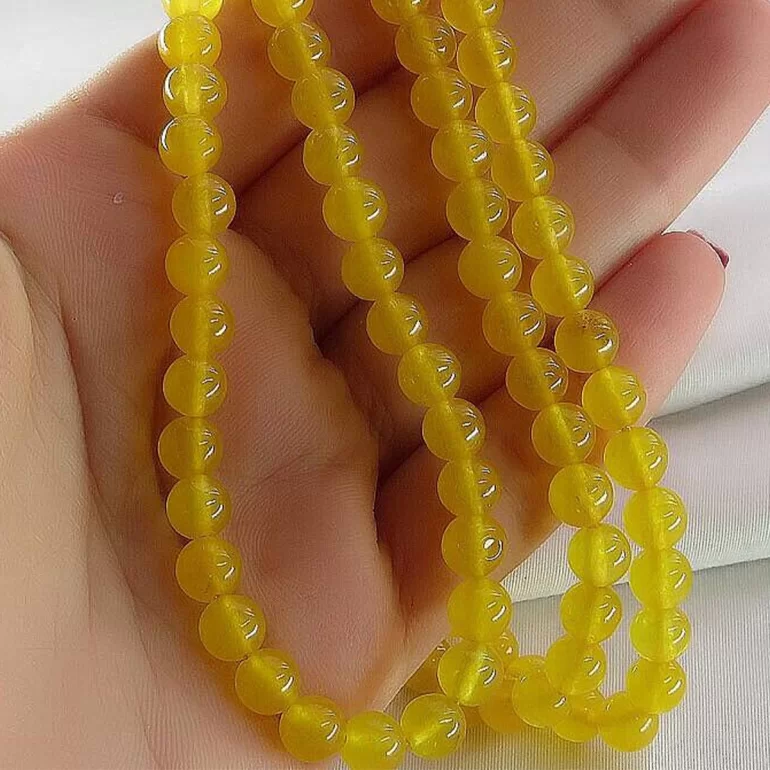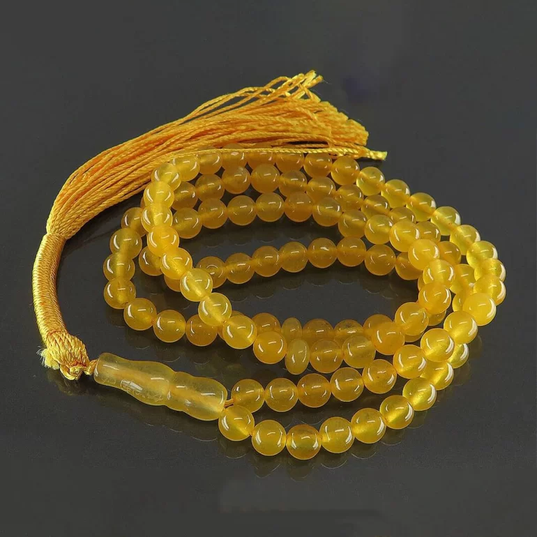 تسبیح جید زرد 101 دانه حکاکی شرف الشمس کد 114346