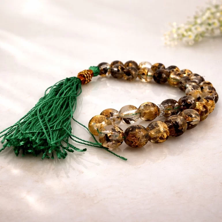 تسبیح 33 دانه متبرک به گل های ضریح امام رضا (ع)