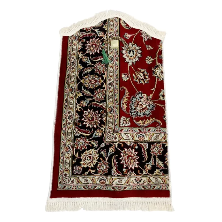 این سجاده نماز، نمونهای از هنر و عشق است که با چینش نخهای فرش حرم رضوی، با دقت و مهر ساخته شده است. هر نخ، قصهای از ایمان و توکل را در دل خود دارد و هر نقش، جلوهای از خشوع و بندگی را به تصویر میکشد.