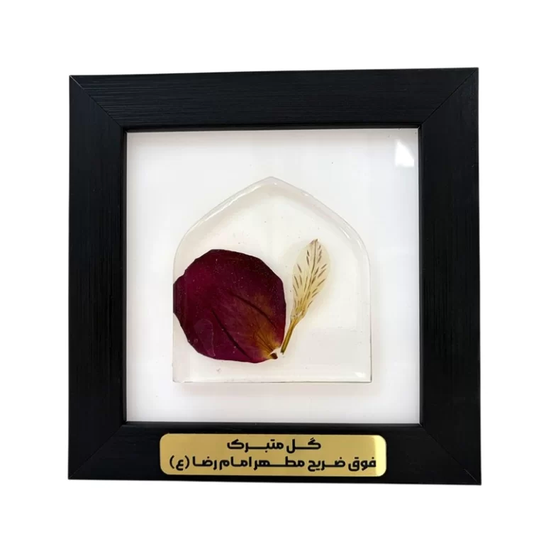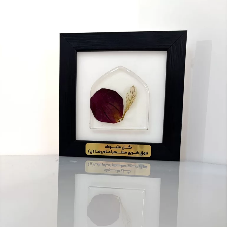 قاب گل رزینی گل های خشک شده فوق ضریح امام رضا (ع) میتواند هدیه ای فوق العاده برای عزیزان شما باشد. این قاب نفیس مزین به گل های خشک شده متبرکی است که روزی بالای ضریح مقدس حضرت امام رضا (ع) آرام گرفته اند و اکنون در نهایت احترام و دقت در قالبی هنری تقدیم شما گردیده است. هدیه ای فاخر و معنوی یادآور عطر رضوی و متبرک شده به نسیم کرامت آستان حضرت شمس الشموس به امید آن که این اثر متبرک سبب گشایش، برکت و آرامش در فضای زندگی شما قرار گیرد.
